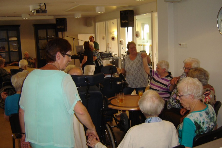 Vrijdag 12 september waren veel bewoners van Woonzorgcentrum Nicasius Heeze verzameld in de ontspanning ruimte. Hier verzorgde Stef Kuijpers uit Tegelen een gezellige middag. Met zijn eenmansorkest bracht hij veel welbekende Nederlandse en Duitse liedjes ten gehore. Dit klonk de bewoners zo bekend in de oren dat zij allemaal uit volle borst meezongen. Er werd zelfs gedanst en de polonaise gelopen. Dit alles onder het genot van een hapje en een drankje en met inzet van veel vrijwilligers. De bewoners konden terug zien op een heel gezellige middag. Dit is mede mogelijk gemaakt door financiële steun van de Vrienden Zorgcentrum Nicasius.