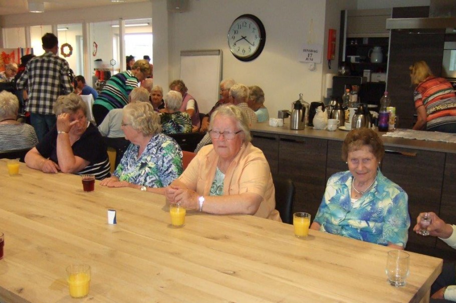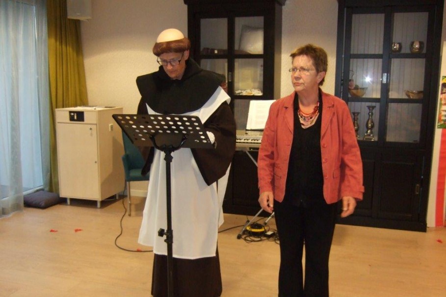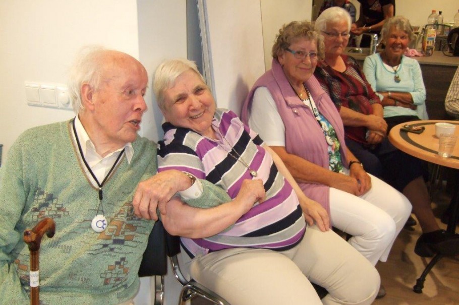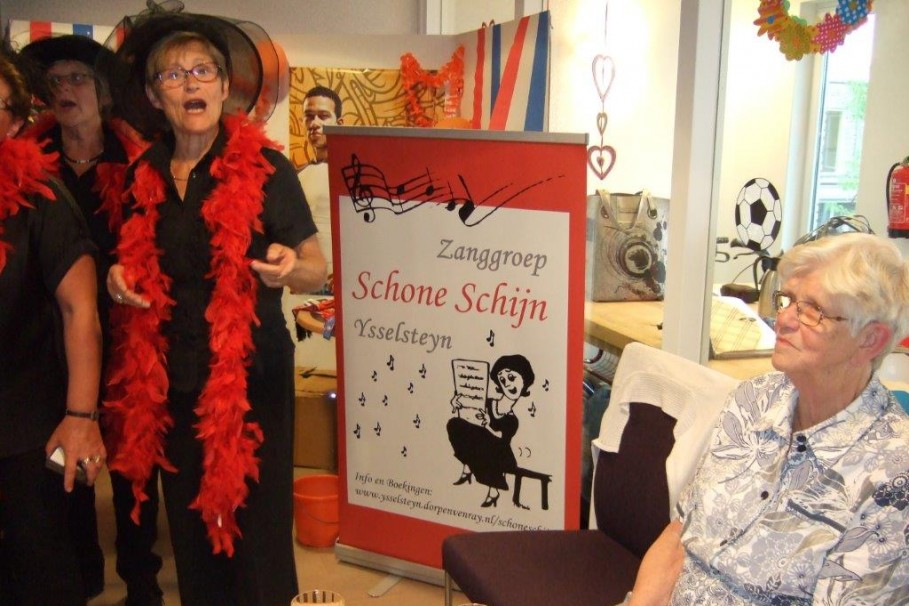 Dinsdagavond 17-06-2014 was de zaal Picasso, in het Woonzorgcentrum Nicasius te Heeze, tot de laatste stoel bezet. Zanggroep Schone Schijn uit IJsselstein kwam een uitvoering geven. Zij brachten een keur aan meezingliedjes. Tussen de liedjes door waren er leuke grappen en grollen. Al met al een heel gezellige avond. De bewoners hebben er dan ook met volle teugen genoten. Het een en ander is mogelijk gemaakt met financiële steun van de Vrienden Zorgcentrum Nicasius.