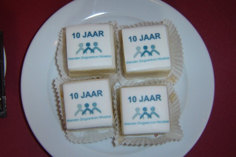 Zondag 12 april 2015 was een gedenkwaardige dag voor de Stichting Vrienden Zorgcentrum Nicasius (VZN). Vandaag vierde zij dat VZN haar10 jarig bestaan vierde. In de Rabozaal van dorpshuis ’t Perron verzamelde alle genodigde zich om ± 14.00 uur bewoners van Nicasius, bewoners van de aanleun woningen, de vrijwilligers, leiding Nicasius, Raad van Toezicht, ambassadeurs en het bestuur. Na het welkomstwoord van de ceremoniemeester sprak de voorzitter, Peter van Lieshout, de genodigde toe. In zijn toespraak liet hij het ontstaan van de VZN de revue passeren. In het 1e jaar 2 activiteiten en in 2015 25 grote en mindergrote activiteiten. Vervolgens namen de Koen van Haren, directeur Annanz en Arie Maas manager van Nicasius het woord. Zij bedankte VZN voor hun tomeloze inzet voor de bewoners. Als cadeau schonk hij de VZN een banier aan. De bannier zal wapperen bij de ingang van Nicasius.