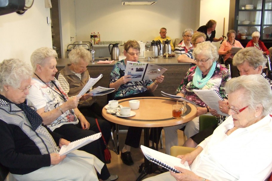 De Picassozaal was tot de nok toe gevuld. Een ± 25 tal zangers en zangeressen, versterkt met combo brachten een scala aan Nederlandstalige liedjes te gehore. Door de uitgereikte zangbundel kon een ieder naar harte lust meezingen.