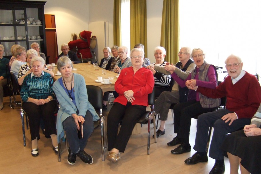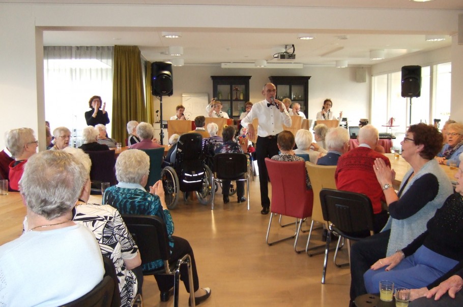 Vrijdag 10-03-2017 waren de bewoners van het woonzorgcentrum Nicasius weer aanwezig in de “Picasso” zaal. Vanmiddag was er een optreden van de zanggroep “De Vrijbuiters”.
