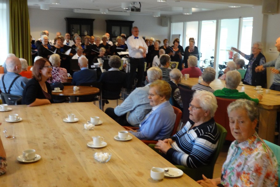 Op vrijdag 15 september genoten de bewoners van Zorgcentrum Nicasius van een klankrijk optreden van het Teutenkoor en combo uit Bergeijk. Zij bezongen allereerst in meerdere melodieën de schoonheid van de Kempen en Brabant. Via onder andere “Sierra Madre” en “The Rivers of Babylon” namen zij de bewoners vervolgens mee naar verdere oorden. “Schön ist der Jugendzeit” en “Op het Leidsche plein” bracht tot slot de toehoorders herinneringen aan hun jeugd. Bij bekende melodieën werd door de aanwezigen op deze mooie middag naar hartenlust meegezongen. Dit optreden is mogelijk gemaakt door Stichting Vrienden Zorgcentrum Nicasius.