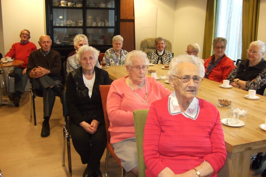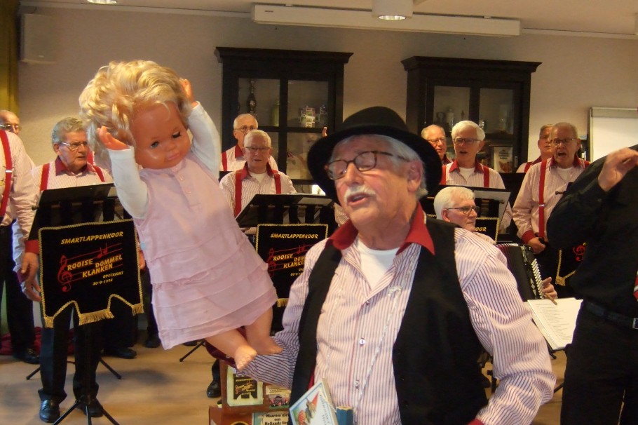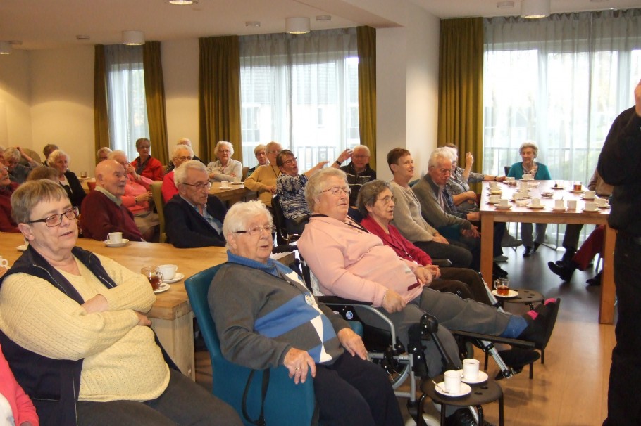 10-11-2017, kwam het Smartlappenkoor “De Rooise Dommelklanken” een muzikale middag verzorgen in het Woonzorgcentrum Nicasius te Heeze. Het was een spectaculair optreden. De 20 mans formatie, met accordeon en slagwerk, zongen de pannen van het dag. Ze brachten een scala aan nummer ten gehore. Veel meezinger en ook luisterliedjes. Een van de zangers had bij vele liedje een act. Dit tot grote hilariteit van de bewoners. Het was en geweldige middag. Er waren volop hopjes en drankjes. Het een en ander is mogelijk gemaakt door de Vrienden Zorgcentrum Nicasius.