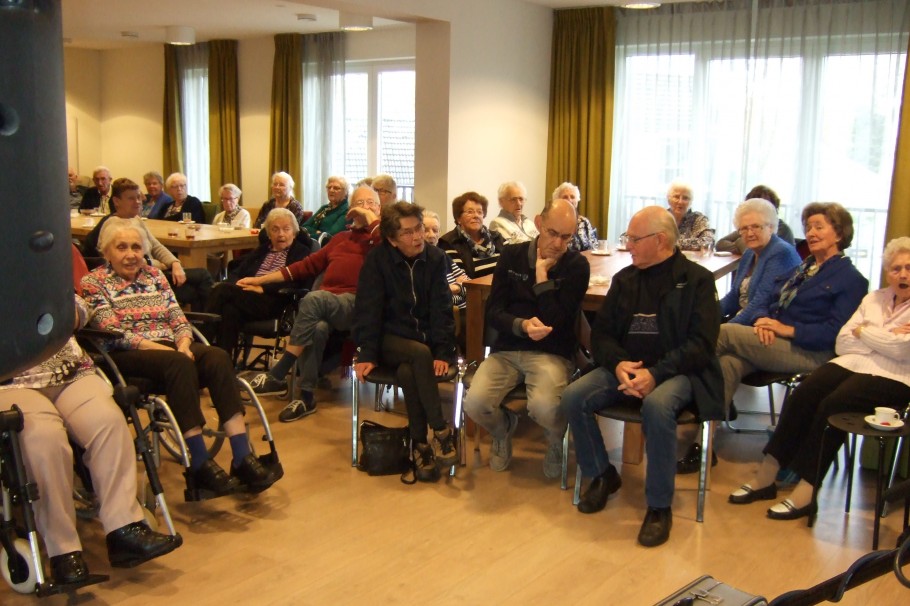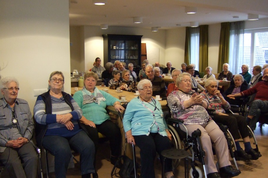 Vrijdagmiddag, 17-11-2017, kwamen de “Golde Liesjes” hun opwachting maken in Woonzorgcentrum Nicasius. Deze 6 dames verzorgde een geweldige muzikale middag. Een scala aan meezingers werd ten gehore gebracht. Zowel de zang alsmede de acts sloegen geweldig aan. Iedereen zong geweldig mee. De lach salvo's waren niet van de lucht. Er werd ook volop gedanst. Het was een kostelijke middag. Ook waren er volop hapjes en drankjes. We kunnen terug zien op een geweldige middag. Het een en ander is mogelijk gemaakt door de Vrienden Zorgcentrum Nicasius.