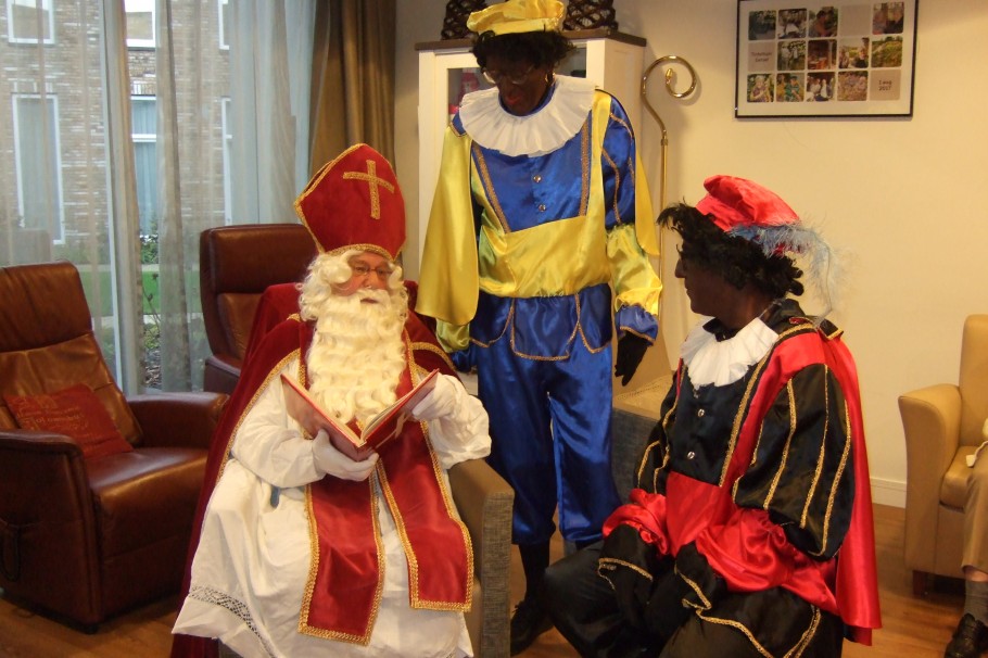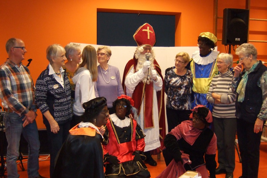 De Rubenszaal was helemaal gevuld met de bewoners van het Woonzorgcentrum Nicasius. Iedereen was in afwachting van de komst van Sint Nicolaas en zijn zwarte pieten. Het duo Rob en Kelly verzorgde de muzikale omlijsting van deze middag. Zij brachten een scala aan meezingers en natuurlijk ook Sinterklaas liedjes. De goed heiligman maakte eerst zijn opwachting in de huiskamers van de PG afdeling. Hij had voor iedereen een goed woord en een cadeau per huiskamer. Ook deed hij de opening van het Café op de PG afdeling. Om 16.00 uur was hij in de Rubenszaal. Na lovende woorden voor de medewerkers en de vrijwilligers had hij persoonlijk cadeaus voor alle bewoners. Er was ook volop snoepgoed, hapjes en drankjes voor iedereen. Iedereen in het Woonzorgcentrum Nicasius kan terug zien op een leuke en gezellige middag. Het een en ander is mogelijk gemaakt door BUMET B.V. en Vrienden Zorgcentrum Nicasius.