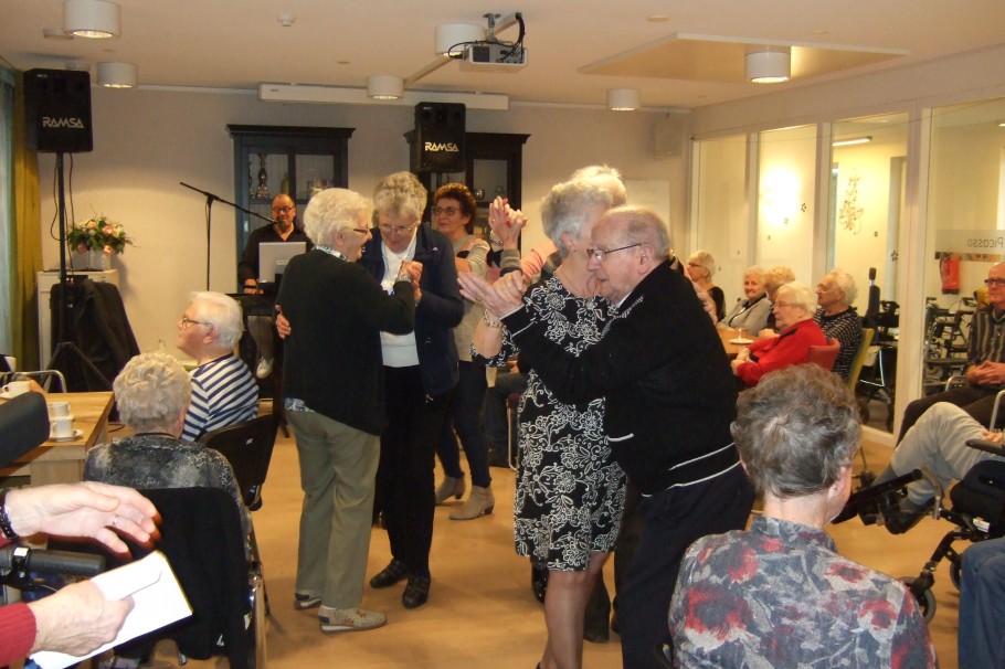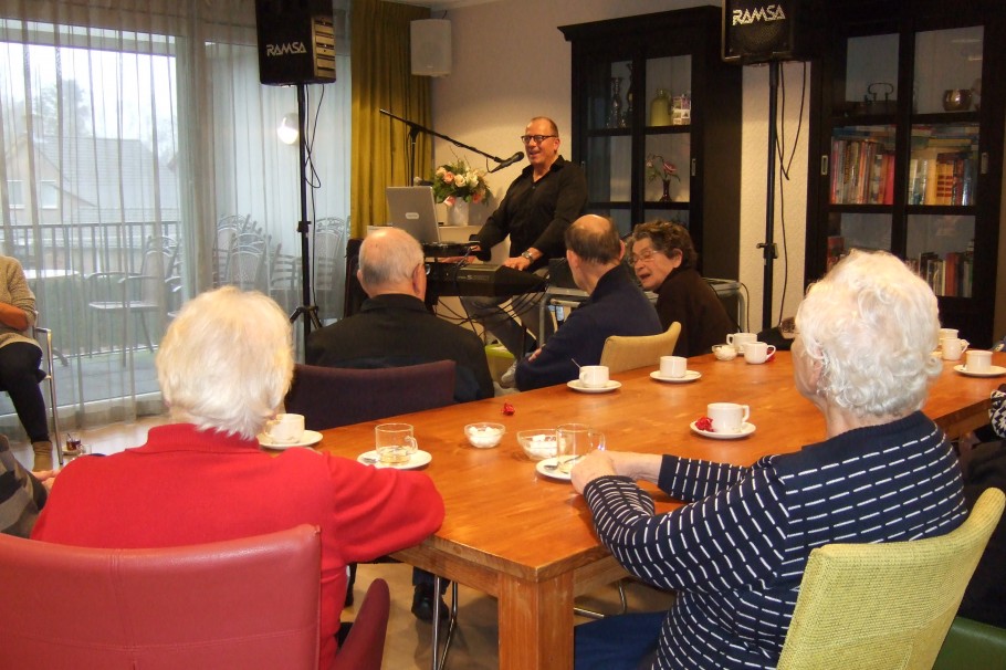 vrijdag 12-01-2018, stond het optreden van Stef Kupers op het programma. Tijdig waren de bewoners van Woonzorgcentrum Nicasius aanwezig voor het optreden van Stef Kupers. In een overvolle zaal zong hij bekende meezing liedjes. Er werd volop meegezongen. Spontaan waren er twee gastoptreden. Bregt, vrijwilligster, en twee bewoners brachten hun muzikale talenten ten behoren. Het was volop feest. Er werd volop gedanst en er was een geweldige polonaise. Volop drankje en hapjes waren er voor iedereen. Men kan terugzien op een geslaagde middag. Het een en ander is mogelijk gemaakt door Vrienden Zorgcentrum Nicasius.