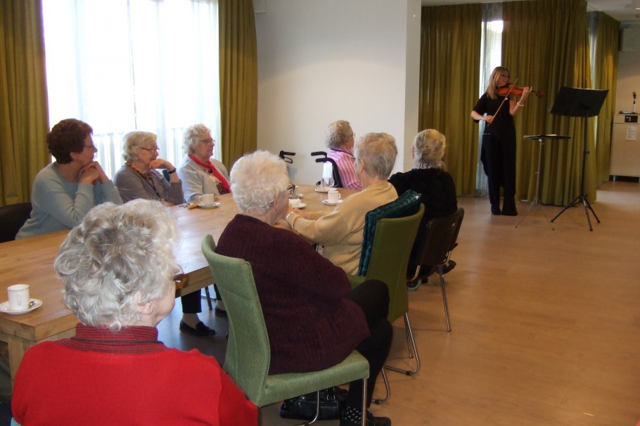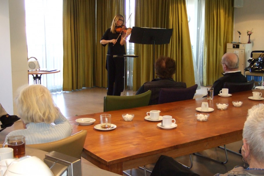 Vrijdag 23-02-2018 kwam de violiste Ninia Lazaar optreden in het woonzorgcentrum Nicasius in Heeze. Samen met een orkestband bracht zij veel filmmuziek van George Gershwin ten gehore. Ook bracht zij muziek van andere componisten kwam aan de orde. De bewoners luisterde met grote aandacht en genoten van deze prachtig muziek. Het een en ander is mogelijk gemaakt door Vrienden Zorgcentrum Nicasius (VZN).