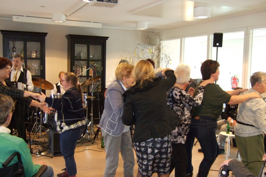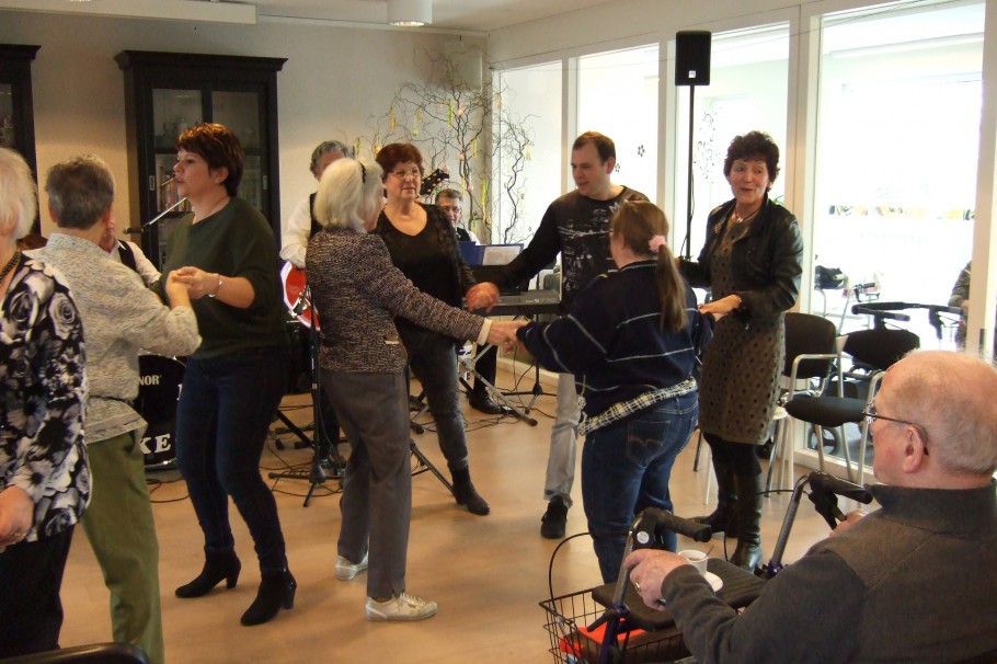 Maandag 18 maart kwam het dansorkest ‘” ‘t Orkesje” opteerden is woonzorgcentrum Nicasius in Heeze. Het 5 mans orkest bracht bekende dansmuziek uit de jaren 60 ten gehore. De bewoners waande zich in danszaal “De Parel van Brabant”. Iedereen zong alle liedjes uit volle borst mee. Ook kwamen de beentjes van de vloer. Er waren volop hapje en drankje voor de bewoners. Het een en ander is mogelijk gemaakt door de Vrienden Zorgcentrum Nicasius.