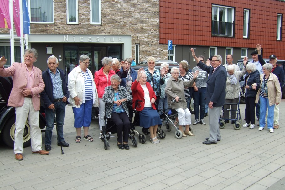 zondag 24-06-2018, was de Oldtimer rit door de Brabantse dreven. Om 14.00 uur kwamen er 6 oude Traction Avant en 1 Hudson voorrijden. De bewoners van Woonzorgcentrum Nicasius konden instappen in auto’s die zij nog herkende uit hun jonge jeugd. De tocht ging over smalle wegen en buurtschappen richting De Peel. Er was een stop gepland bij het Buitencentrum “De Pelen” te Ospel. Hier was er voor iedereen koffie/thee en vlaai. Ook konden de mensen een drankje bestellen. Om 17.00 uur waren we weer in Heeze. Het was een geweldige middag. Het een en ander is mogelijk gemaakt door Traction Avant Nederland afdeling Zuid en de Vrienden Zorgcentrum Nicasius. Na afloop was er voor alle deelnemers een diploma. Het was een geslaagde middag.