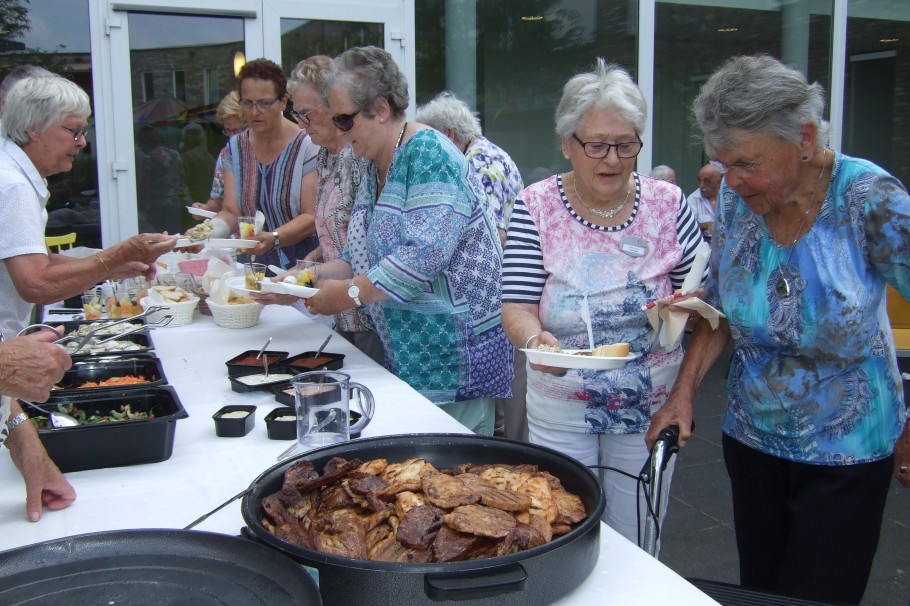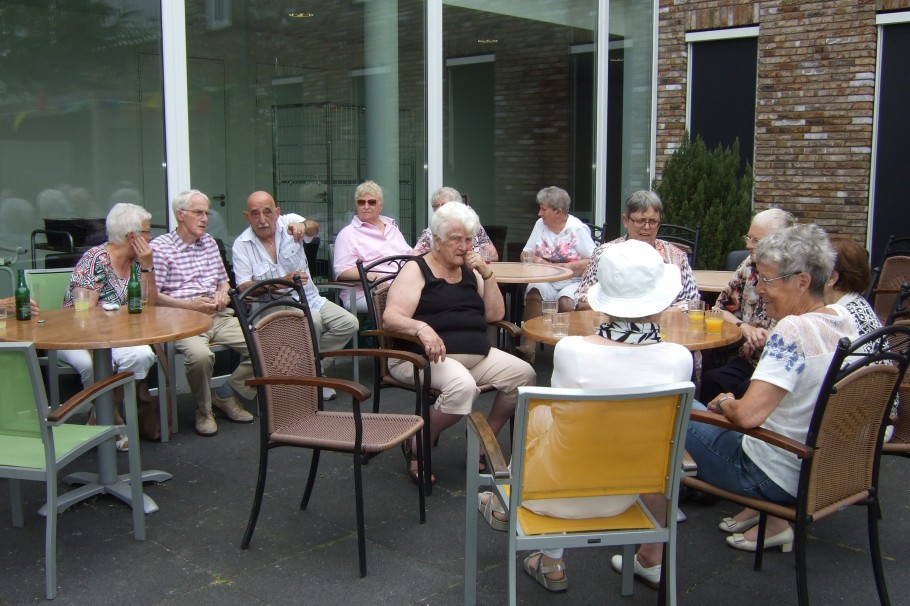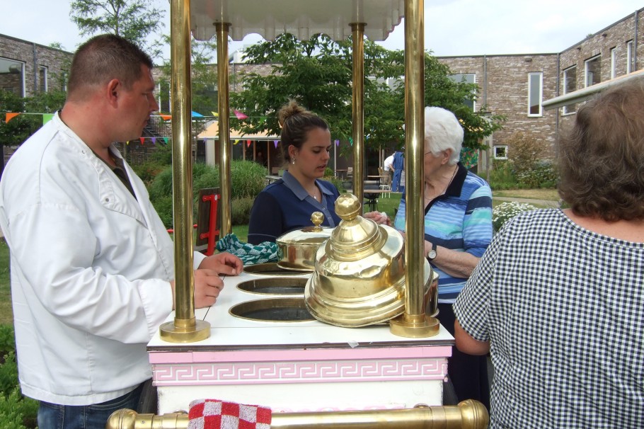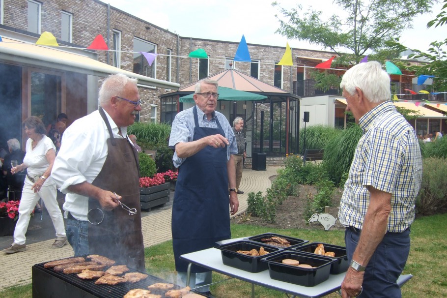 Vrijdag 6 juli 2018 waren de activiteitenbegeleiders, vrijwilligers en de cliëntenraad al vroeg aanwezig in de binnentuin van Woonzorgcentrum Nicasius te Heeze. Zij brachten alles in gereedheid voor het jaarlijks Midzomer Tuinfeest. Dit jaarlijks evenement voor de bewoners is een van de hoogtepunten van het jaar. Koffie/thee met bonbons om te beginnen. De vier BBQ’s werden bemand door de vrijwilligers en cliëntenraad met daarop alle mogelijke vleessoorten. Er was volop keuzen voor iedereen. Ook de drankjes ontbraken niet. Het geheel werd omlijst door muziek en zang van Gerard van Kol. Aan het einde van het feest, kwam een echte ijscokar binnenrijden en konden de bewoners een keuze maken uit verschillende smaken ijs. Het was een zeer geslaagde middag. Dit alles is mogelijk gemaakt door de Vrienden Zorgcentrum Nicasius.