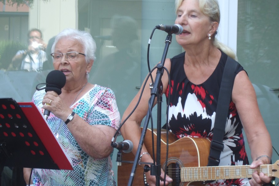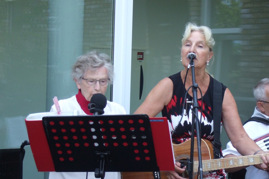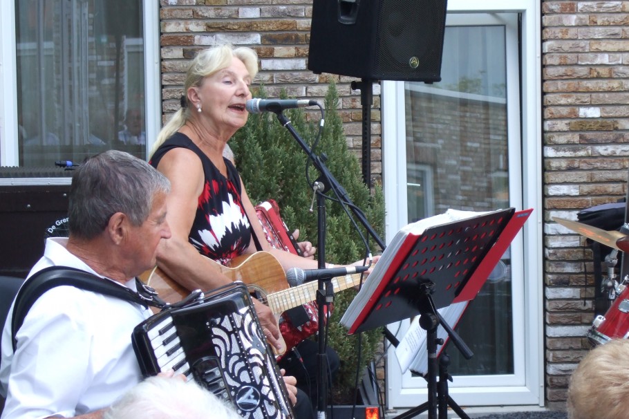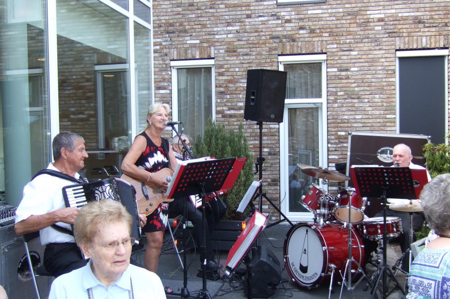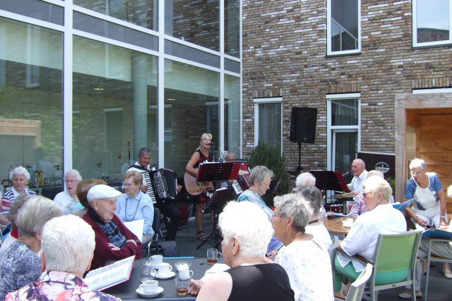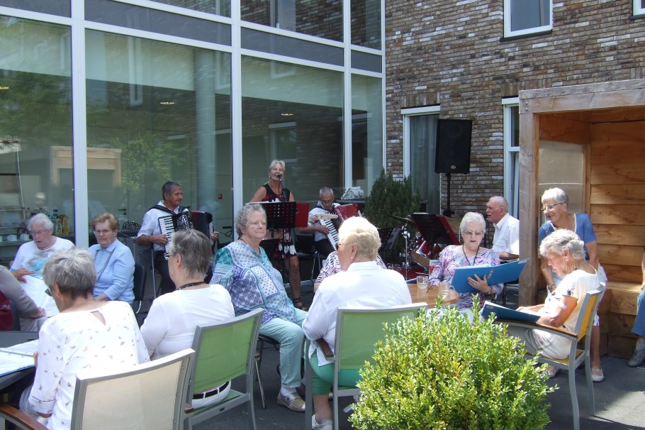 Vrijdag 20-07-2018 kwamen “De Grensmuzikanten” hun opwachting maken in het Woonzorgcentrum Nicasius te Heeze. Gezien het warme weer hadden de vrijwilligers het terras in de tuin ingericht als concertzaal. Vrijwilligers hiervoor hartelijk dank. Heerlijk in de schaduw en met een lekker briesje was het daar goed toeven. Een scala aan leuke liedjes werden er ten gehore gebracht. Het was volop meezingers. Twee bewoners verzorgde een solo optreden. In de pauze was er een heerlijk bakje roomijs voor iedereen. Dit alles is mogelijk gemaakt door de Vrienden Zorgcentrum Nicasius.