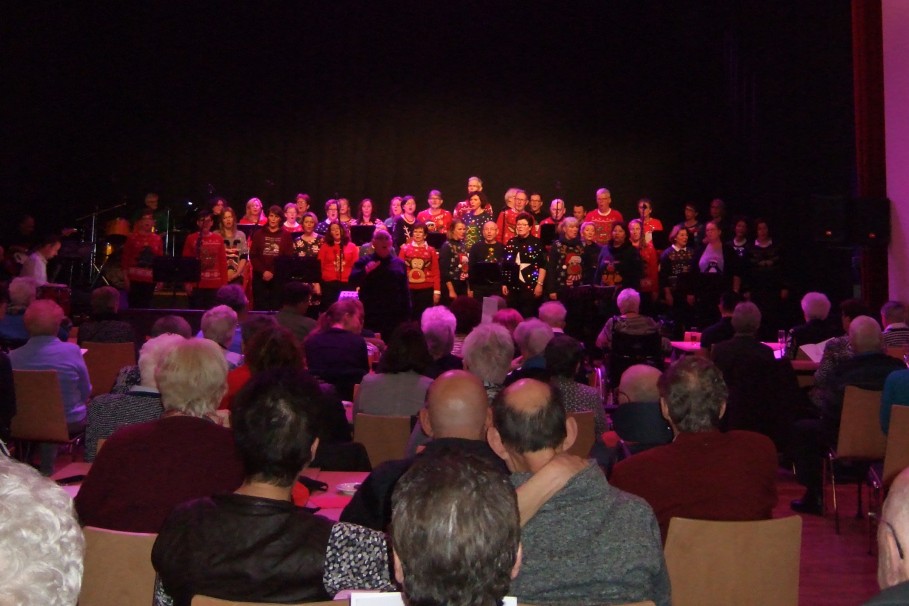 Zaterdagmiddag, 15-12-2018, was het een drukte van belang in de Rabozaal van het dorpshuis “’t Perron”. De zaal was tot op de laatste stoel bezet. Popkoor “Lanara” met Combo verzorgde een leuke muzikale kerstshow voor de bewoners van Woonzorgcentrum Nicasius. Zij brachten een scala aan leuke kerstliedjes ten gehore. Bij een groot aantal liedjes werd er uit volle borst meegezongen. Tussen de liedjes door werden er gedichten voorgedragen. Ook de vrijwilligers alsmede de mantelzorgers waren uitgenodigd voor deze middag. Voor de inwendige mens was gezorgd. Er was koffie met vlaai en volop drankjes en hapjes. Na afloop was er voor alle bezoekers een Kersttraktatie. We kunnen terug zien op een heel geslaagde middag.